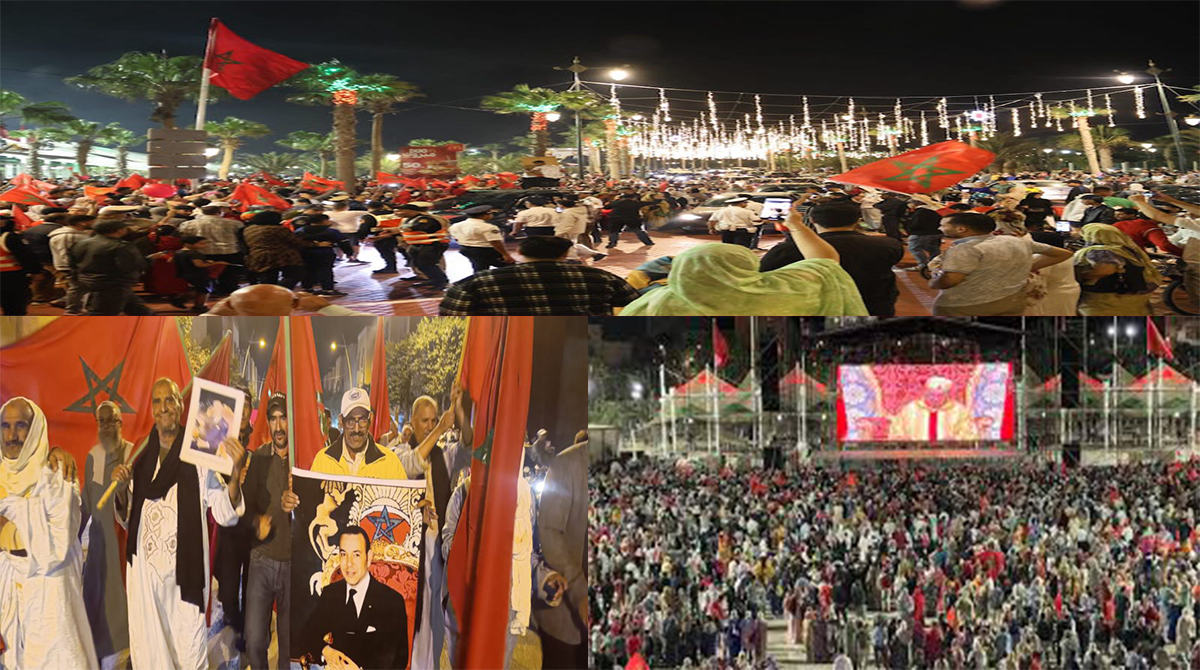 حيث خرج المواطنون إلى الشوارع رافعين الأعلام الوطنية وصور جلالة الملك “محمد السادس”، حفظه الله. مرددين شعارات تؤكد على مغربية الصحراء والإجماع الشعبي على الدفاع عن الوحدة الترابية للمملكة.