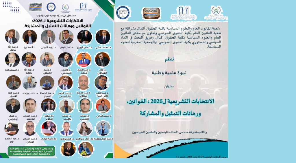 ستعد كلية العلوم القانونية والاقتصادية والاجتماعية أكدال بالرباط لاحتضان ندوة علمية وطنية وازنة، يومي الأربعاء والخميس 21 و22 يناير 2026، حول موضوع “الانتخابات التشريعية لـ2026: القوانين ورهانات التمثيل والمشاركة”، في سياق وطني يتسم بتصاعد النقاش العمومي حول مستقبل العملية الانتخابية، وحدود الإطار القانوني المؤطر لها، ومستوى انخراط المواطنات والمواطنين في الاستحقاقات المقبلة.